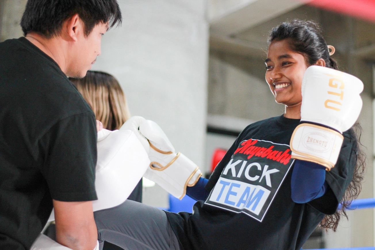 キックボクシングに興味はあるけれど、最初の一歩に不安を感じている方のために、無料体験を行っています。所要時間は約一時間程度。カウンセリングをもとに、基本の動き、ミッド打ちなどを体験していただけます。
